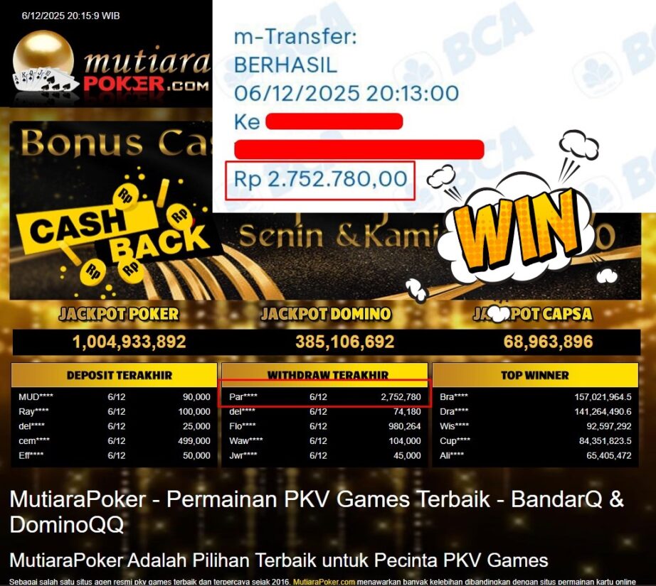 Bukti Withdraw ( 2.752.780,- ) Member Setia MutiaraPoker