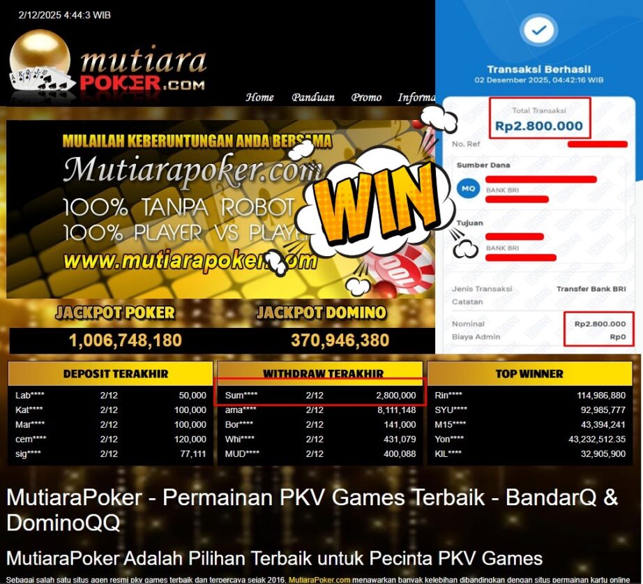 Bukti Withdraw ( 2.800.000,- ) Member Setia MutiaraPoker