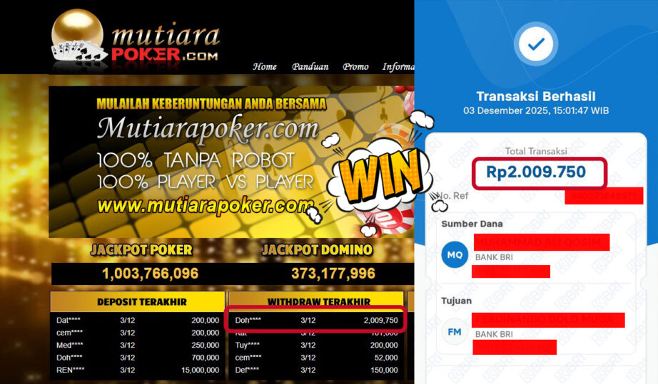 Bukti Withdraw MutiaraPoker