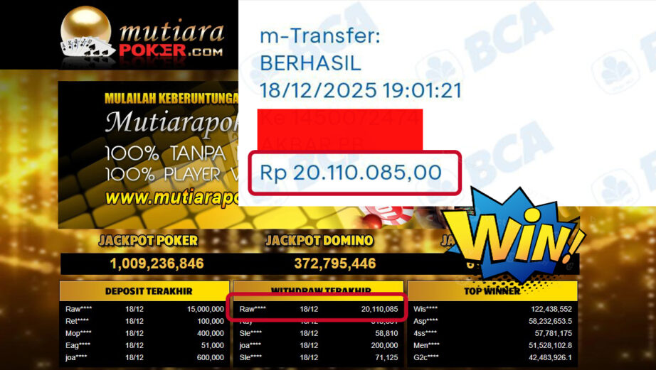 Bukti Withdraw ( 20,110,085,- ) Member Setia MutiaraPoker