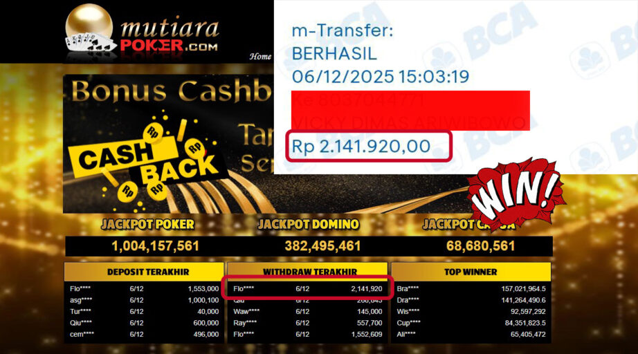 Bukti Withdraw ( 2,141,920,- ) Member Setia MutiaraPoker
