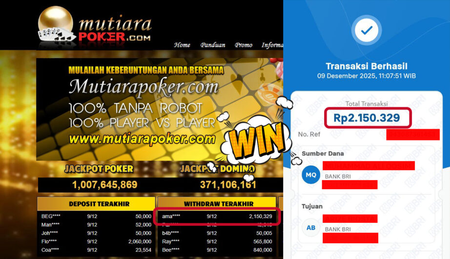 Bukti Withdraw MutiaraPoker