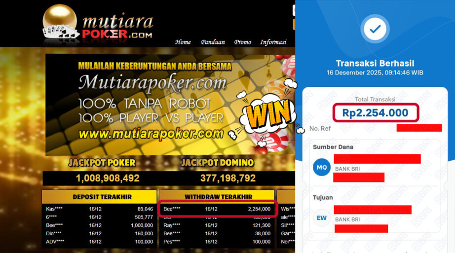 Bukti Withdraw MutiaraPoker