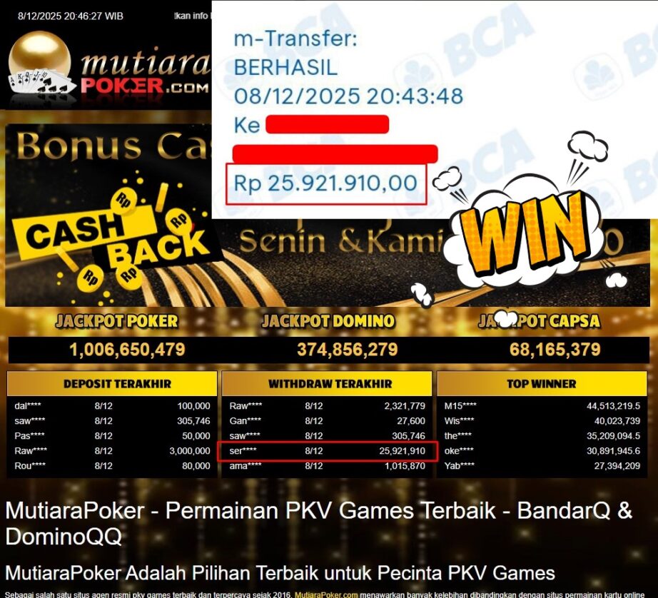 Bukti Withdraw ( 25.921.910,- ) Member Setia MutiaraPoker