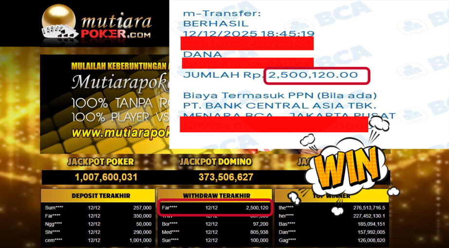 Bukti Withdraw MutiaraPoker