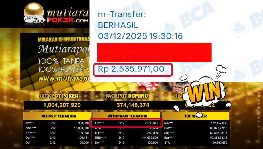Bukti Withdraw ( 2,535,971,- ) Member Setia MutiaraPoker