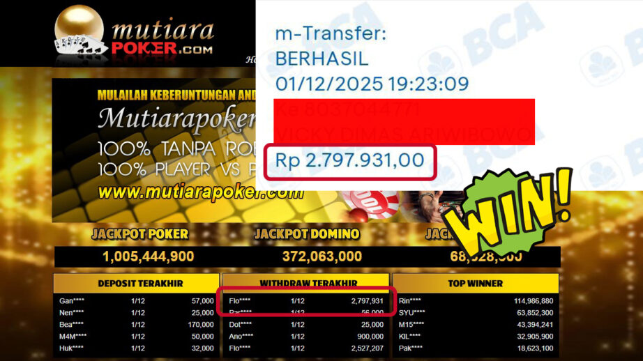 Bukti Withdraw MutiaraPoker