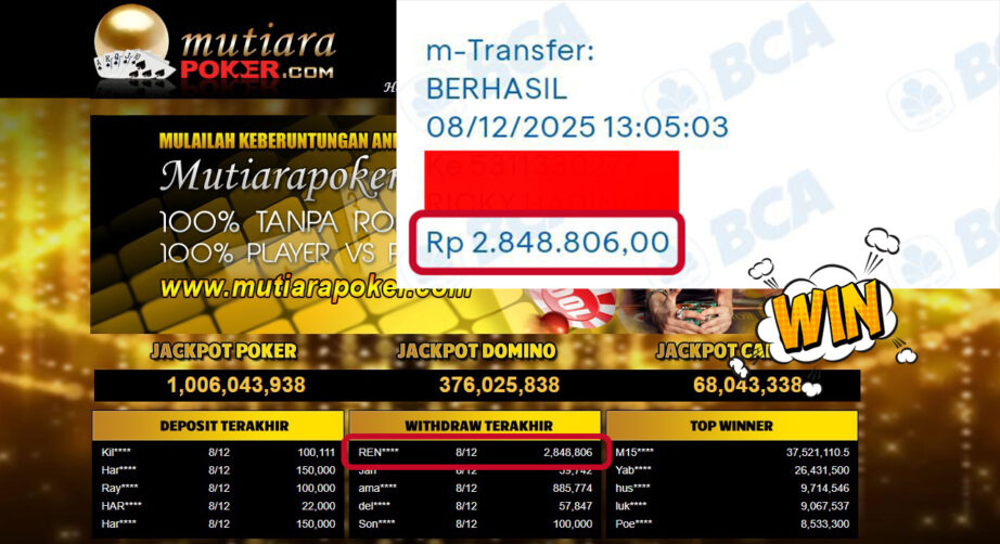 Bukti Withdraw MutiaraPoker