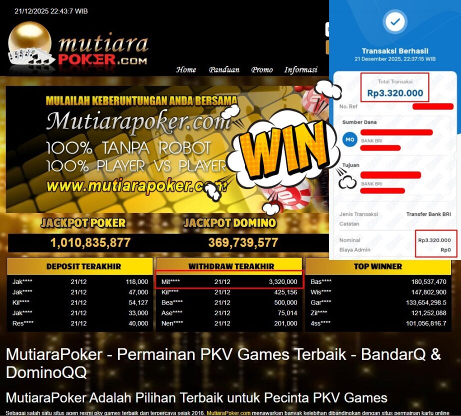 Bukti Withdraw ( 3.320.000,- ) Member Setia MutiaraPoker