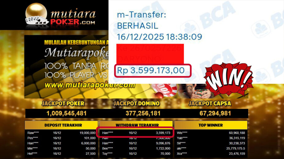 Bukti Withdraw MutiaraPoker