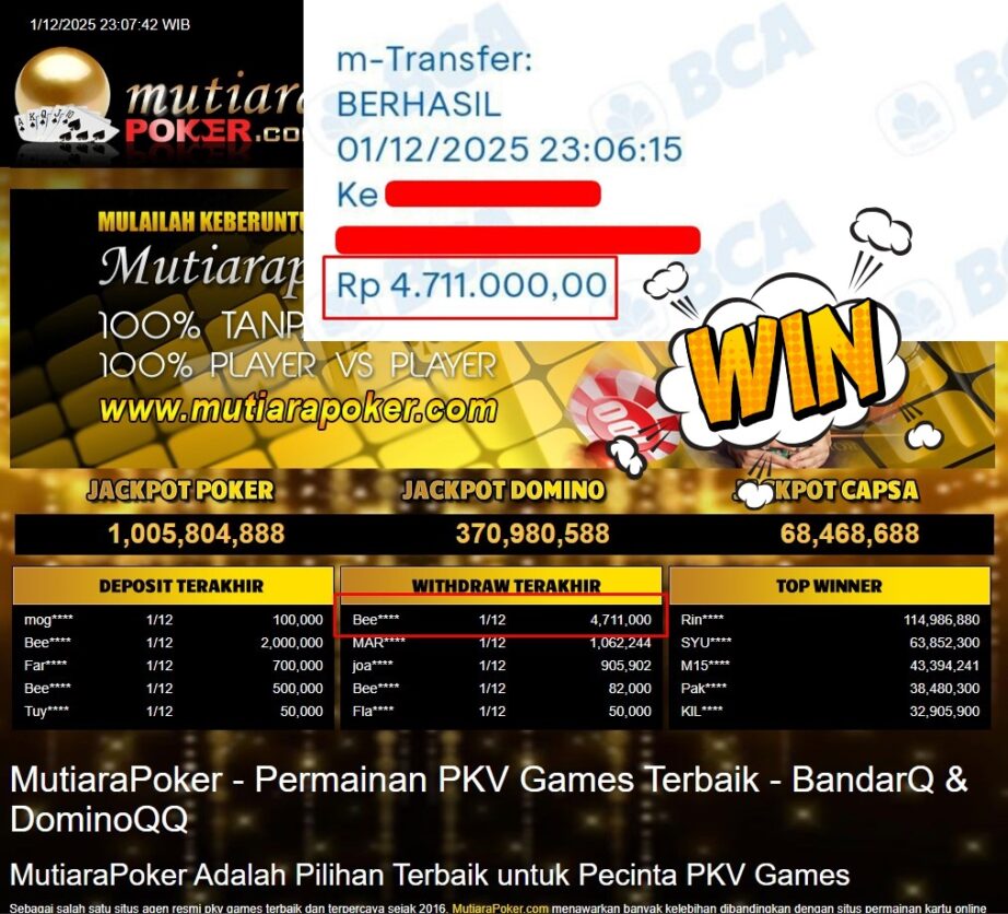 Bukti Withdraw ( 4.711.000,- ) Member Setia MutiaraPoker