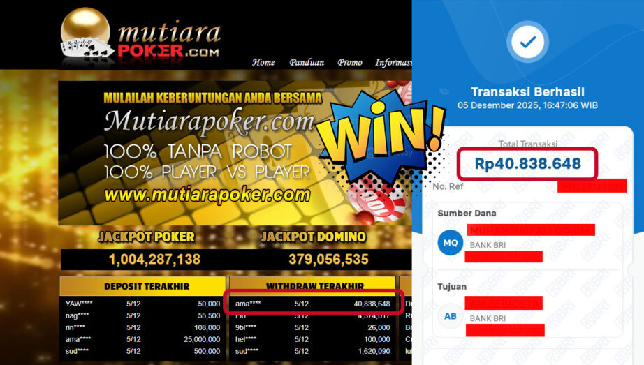 Bukti Withdraw ( 40,838,648,- ) Member Setia MutiaraPoker