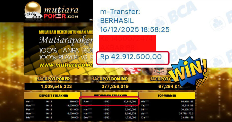 Bukti Withdraw ( 42,912,500,- ) Member Setia MutiaraPoker