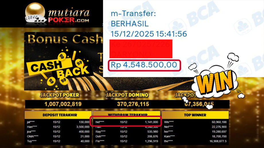 Bukti Withdraw ( 4,548,500,- ) Member Setia MutiaraPoker