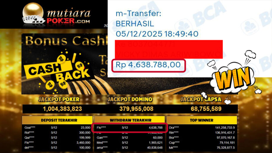 Bukti Withdraw ( 4,638,788,- ) Member Setia MutiaraPoker