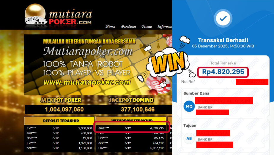 Bukti Withdraw ( 4,820,295,- ) Member Setia MutiaraPoker