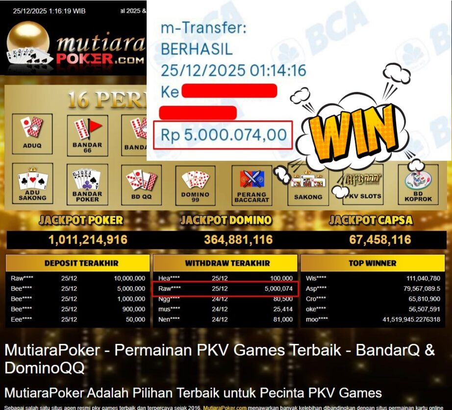 Bukti Withdraw ( 5.000.074,- ) Member Setia MutiaraPoker