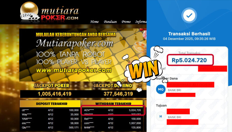 Bukti Withdraw ( 5,024,720,- ) Member Setia MutiaraPoker