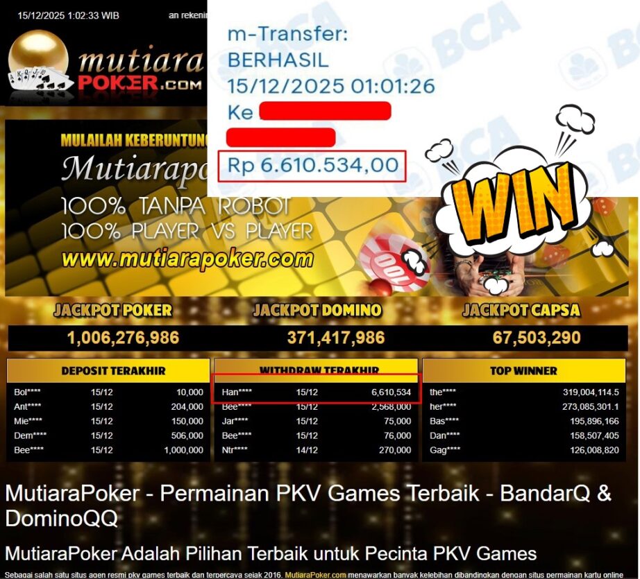 Bukti Withdraw ( 6.610.534,- ) Member Setia MutiaraPoker