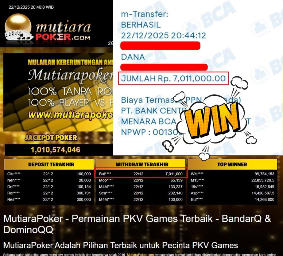 Bukti Withdraw ( 7.011.000,- ) Member Setia MutiaraPoker