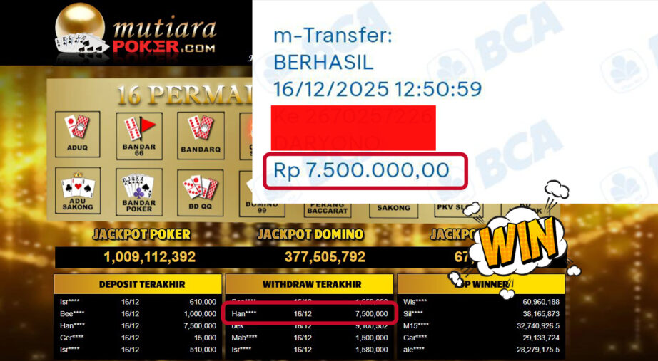 Bukti Withdraw ( 7,500,000,- ) Member Setia MutiaraPoker