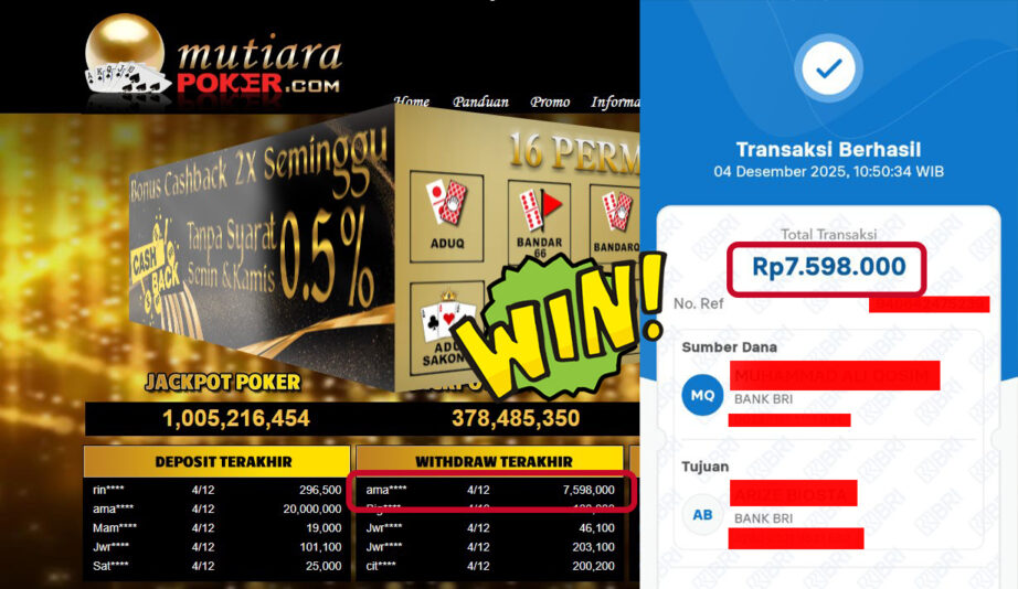 Bukti Withdraw ( 7,598,000,- ) Member Setia MutiaraPoker