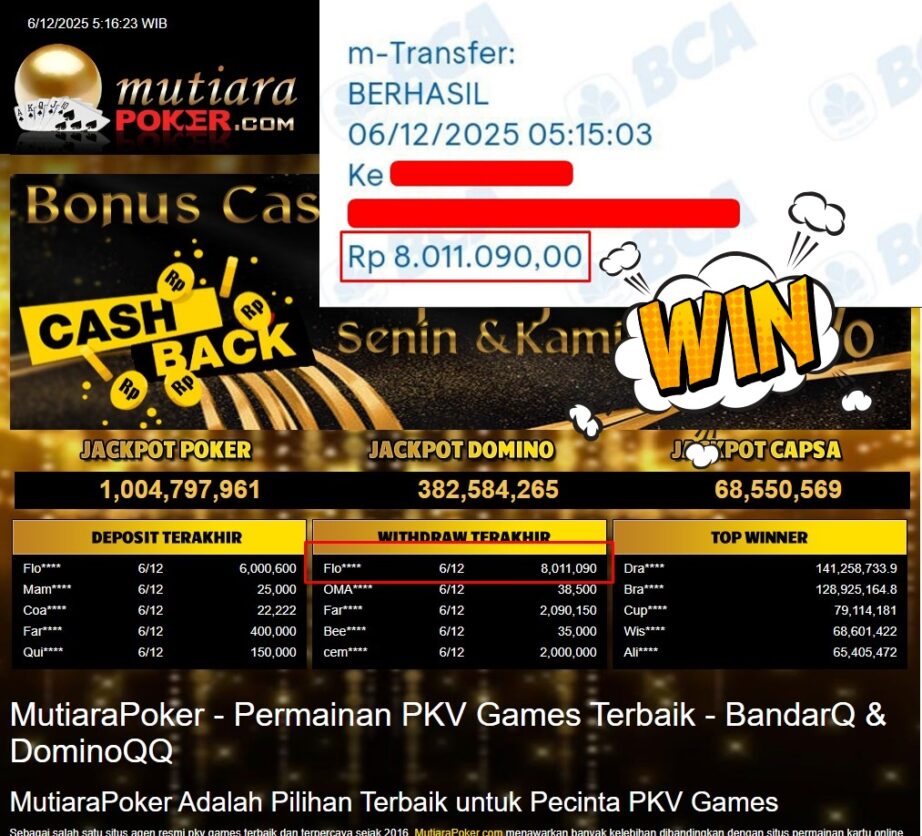 Bukti Withdraw ( 8.011.090,- ) Member Setia MutiaraPoker