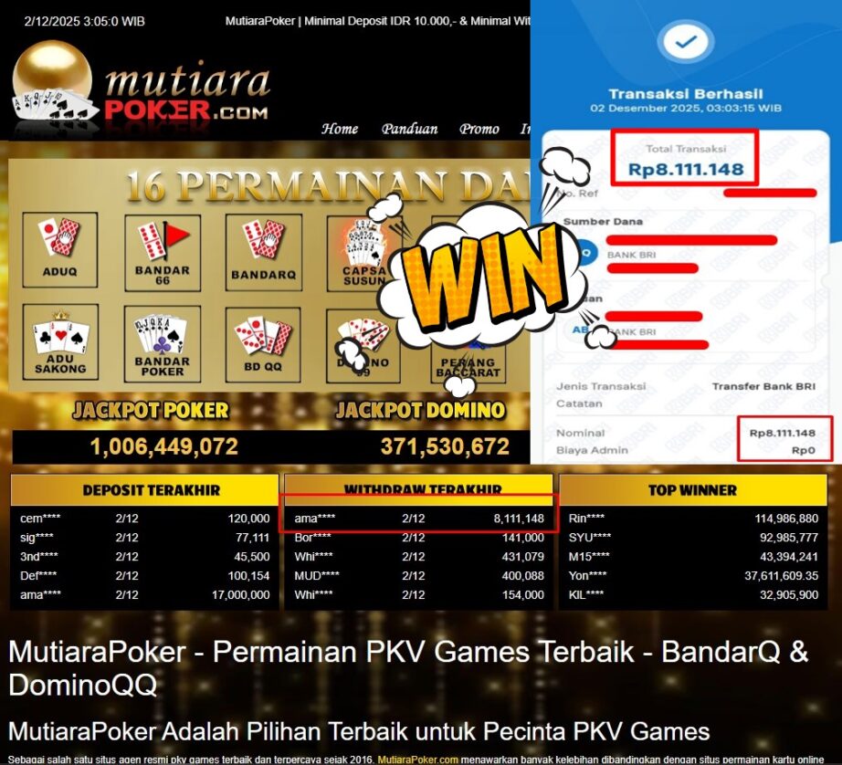 Bukti Withdraw ( 8.111.148,- ) Member Setia MutiaraPoker