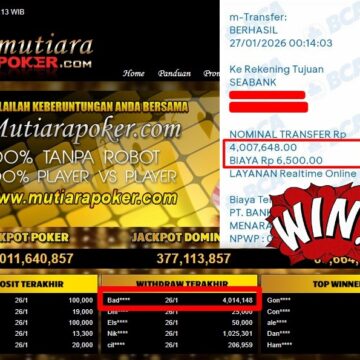 Bukti Withdraw ( 4.014.148,- ) Member Setia MutiaraPoker