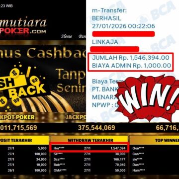 Bukti Withdraw ( 1.547.394,- ) Member Setia MutiaraPoker