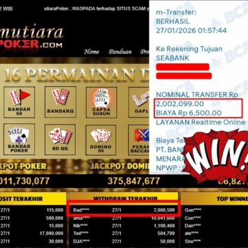 Bukti Withdraw ( 2.000.000,- ) Member Setia MutiaraPoker