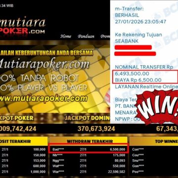 Bukti Withdraw ( 6.500.000,- ) Member Setia MutiaraPoker