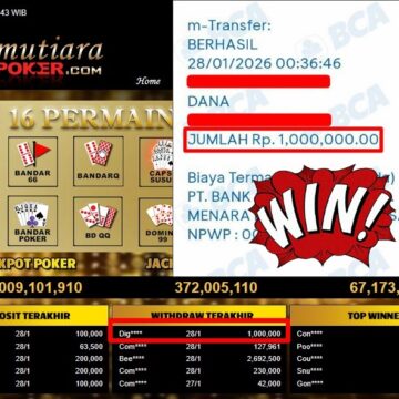Bukti Withdraw ( 1.000.000,- ) Member Setia MutiaraPoker