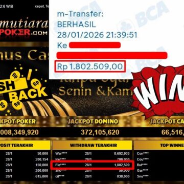 Bukti Withdraw ( 1.802.509,- ) Member Setia MutiaraPoker