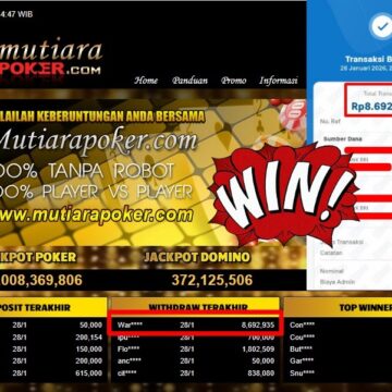 Bukti Withdraw ( 8.692.935,- ) Member Setia MutiaraPoker