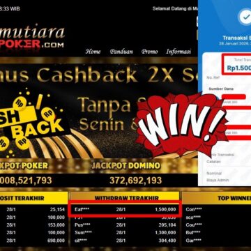 Bukti Withdraw ( 1.500.000,- ) Member Setia MutiaraPoker