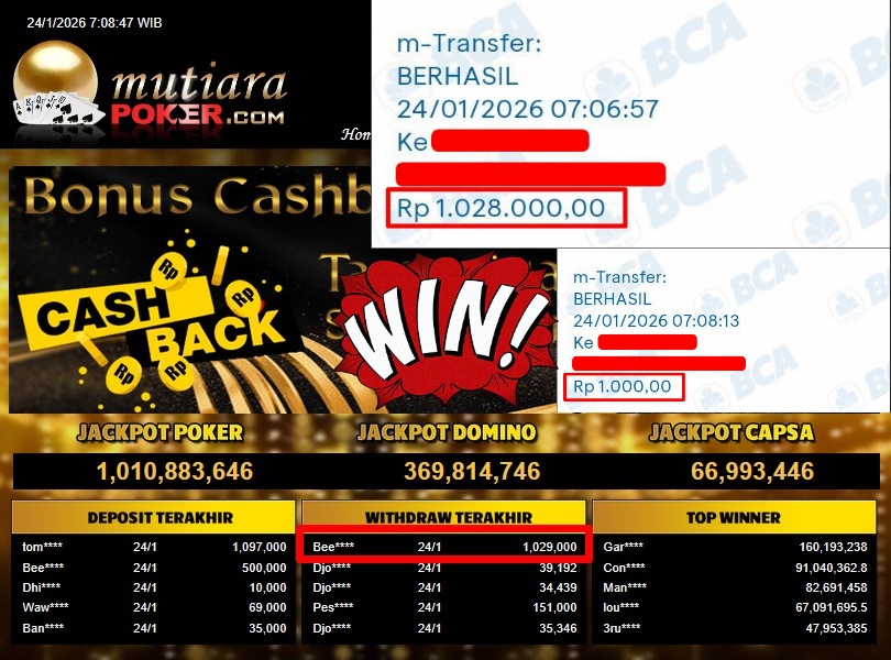 Bukti Withdraw ( 1.029.000,- ) Member Setia MutiaraPoker