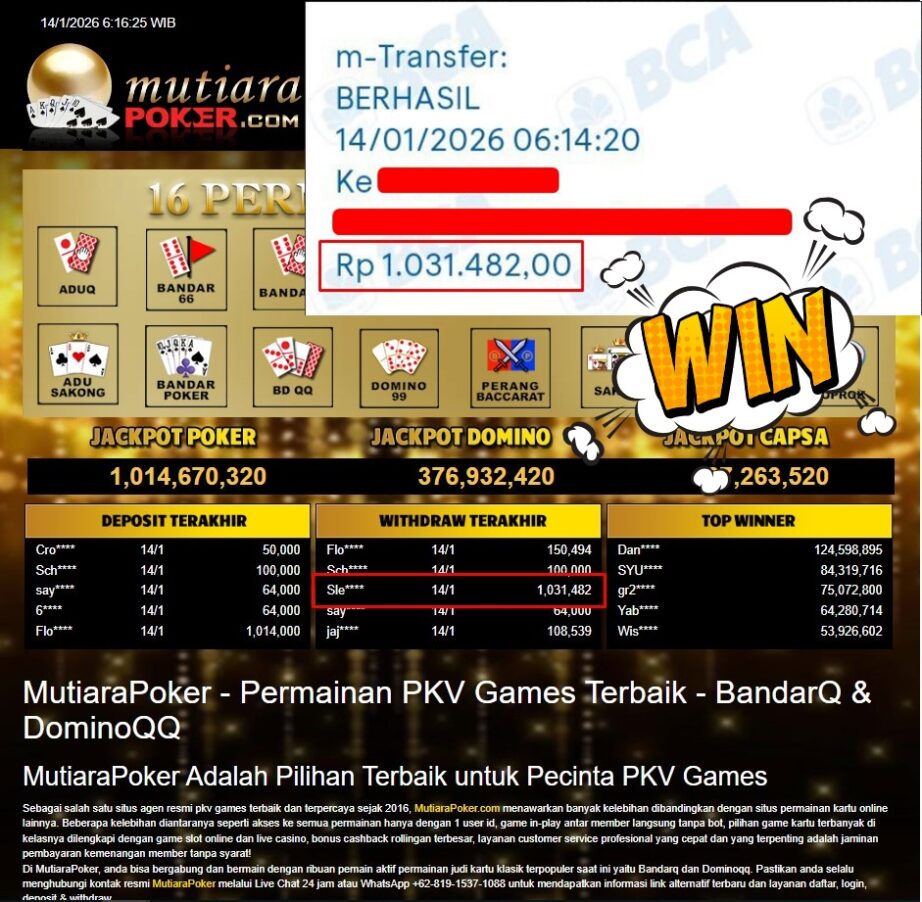 Bukti Withdraw MutiaraPoker