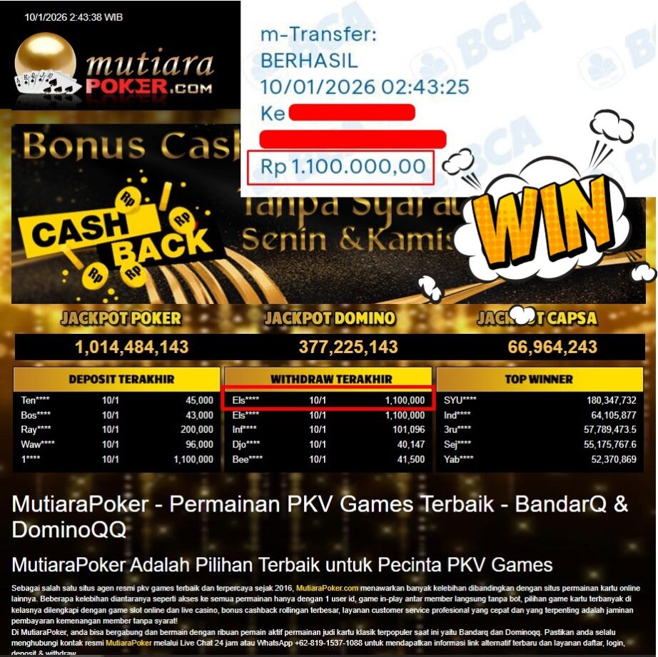 Bukti Withdraw ( 1.100.000,- ) Member Setia MutiaraPoker