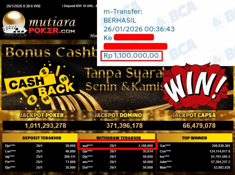 Bukti Withdraw ( 1.100.000,- ) Member Setia MutiaraPoker