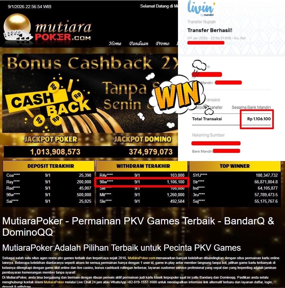 Bukti Withdraw ( 1.106.100,- ) Member Setia MutiaraPoker