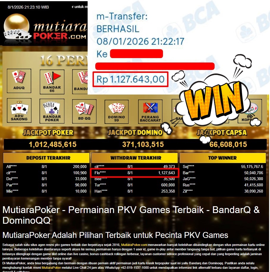 Bukti Withdraw MutiaraPoker
