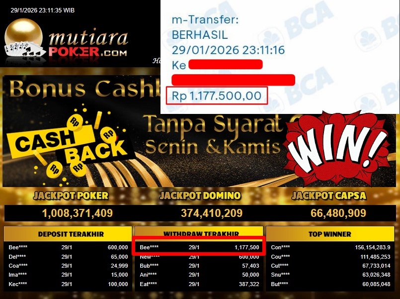 Bukti Withdraw ( 1.177.500,- ) Member Setia MutiaraPoker