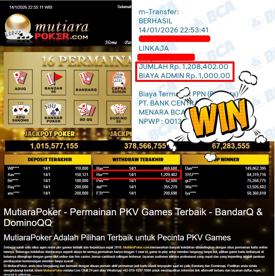Bukti Withdraw ( 1.209.402,- ) Member Setia MutiaraPoker