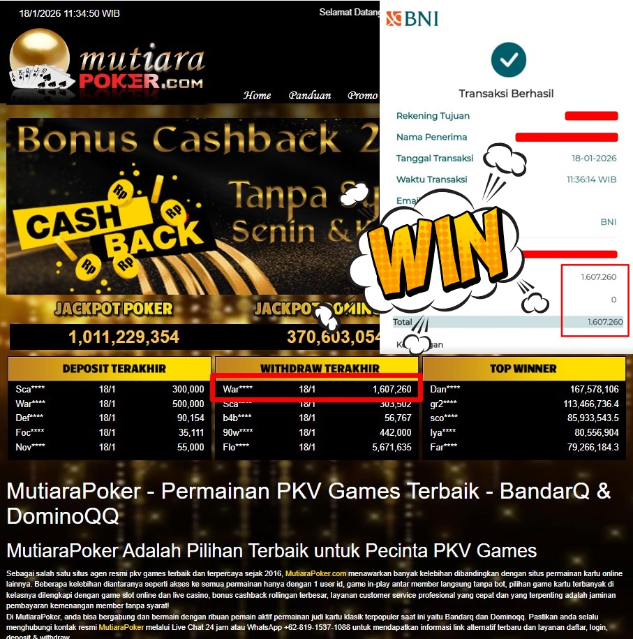 Bukti Withdraw MutiaraPoker