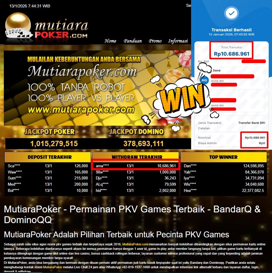 Bukti Withdraw MutiaraPoker
