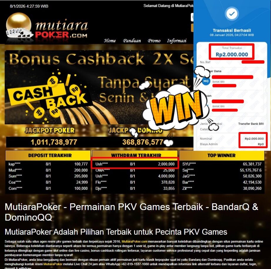 Bukti Withdraw MutiaraPoker