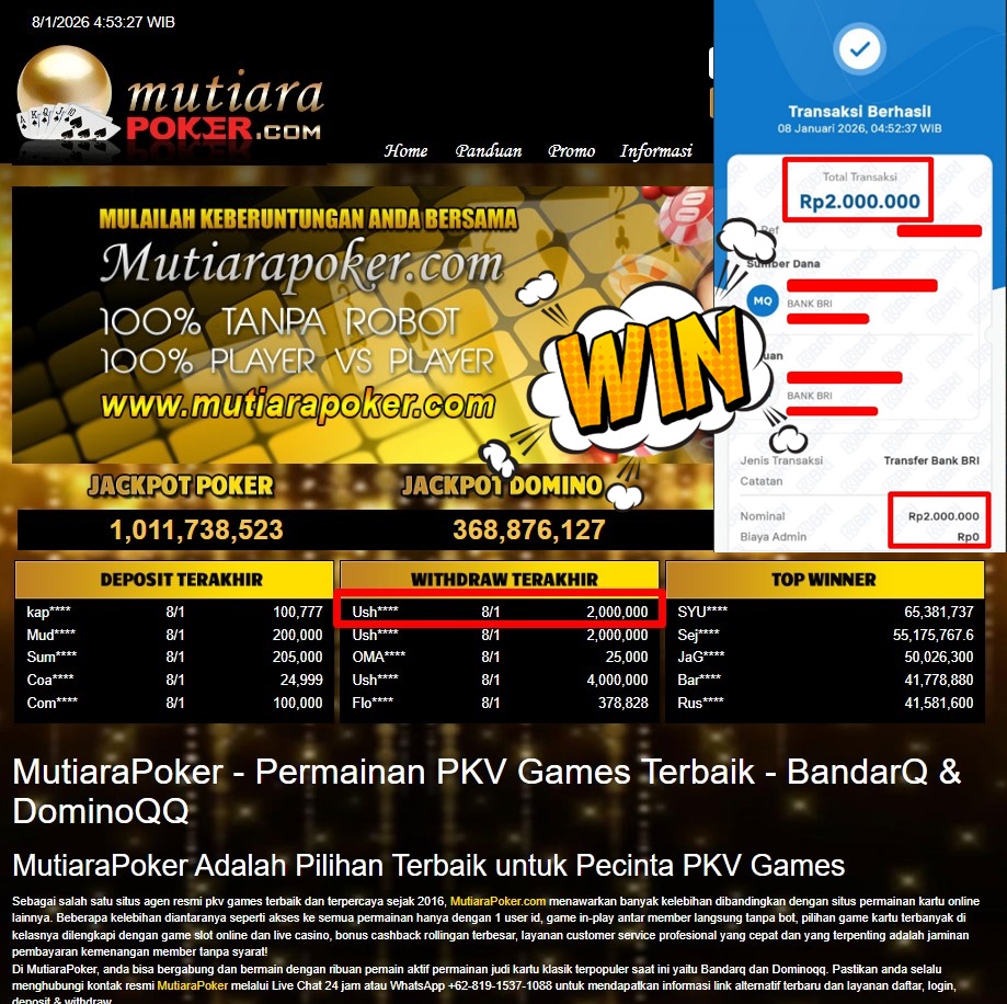 Bukti Withdraw ( 2.000.000,- ) Member Setia MutiaraPoker