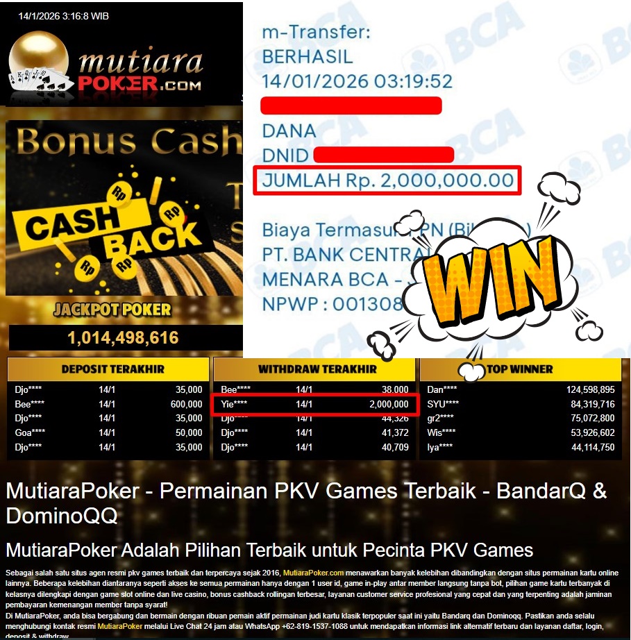 Bukti Withdraw MutiaraPoker