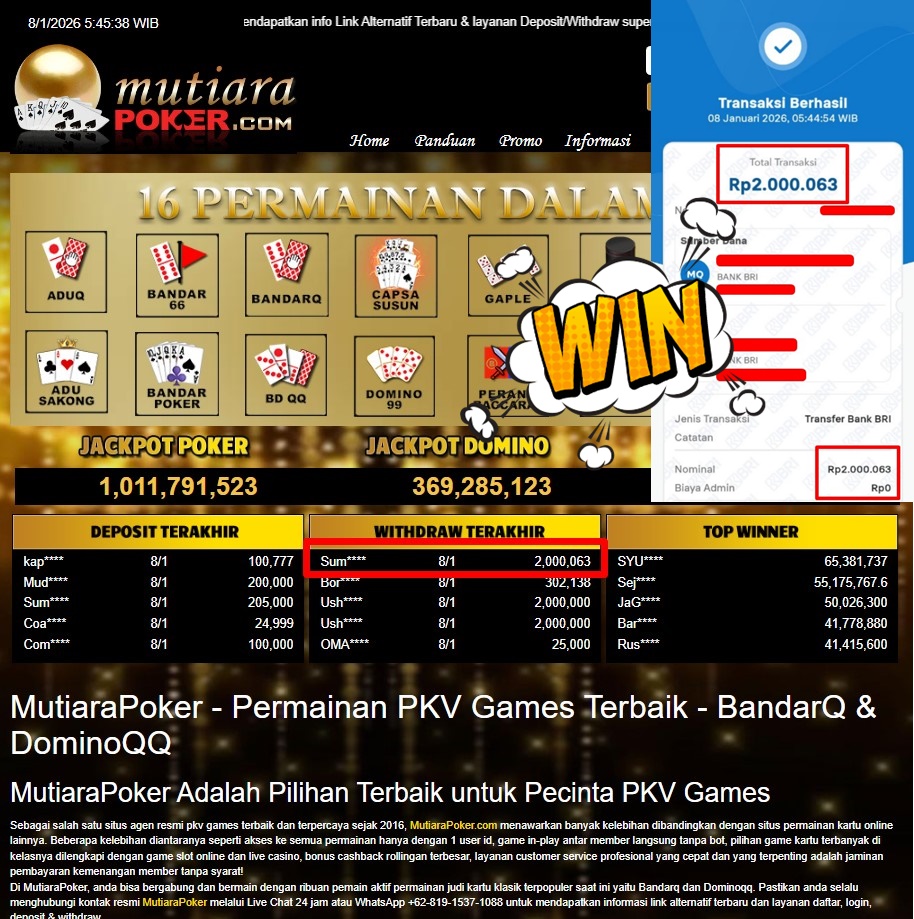 Bukti Withdraw ( 2.000.063,- ) Member Setia MutiaraPoker